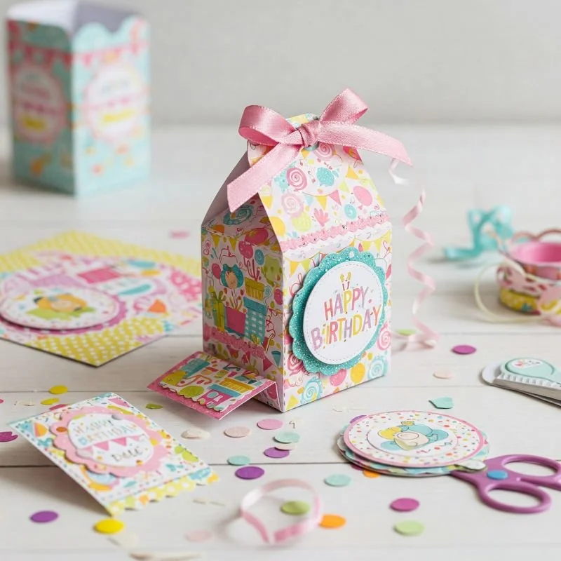 Why settle for boring plastic goodie bags when you can craft adorable papercraft boxes to hold candies or small trinkets? Purchase or download simple box templates online, or create your own by folding cardstock into basic cube or pyramid shapes. Encourage participants to decorate with stamps, stickers, or metallic pens. Cut out shapes like stars or hearts for a peekaboo effect, or tie them closed with twine for a rustic vibe. The best part is that these boxes can match the birthday theme—pastel polka dots for a unicorn party, or bold stripes for a superhero bash. When placed on a table, they look like a swarm of miniature gift boxes, each one filled with sweet surprises. Guests get a charming keepsake that underscores the event’s creative flair.