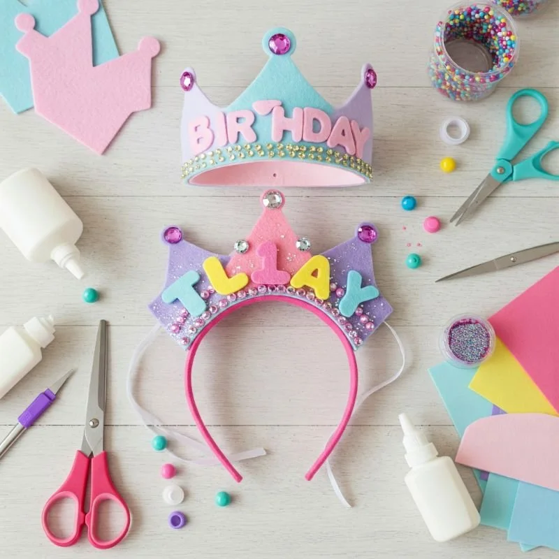Every birthday star deserves a crown—or tiara—to mark the occasion in style. Grab some sparkly cardstock, scissors, and adhesive jewels or stickers. Pre-measure the cardstock strips to fit snugly around heads, then allow everyone to snip and shape them into crowns. Kids might prefer simpler designs with big gem stickers, while older guests can experiment by cutting elaborate scalloped edges or layering multiple strips for a 3D effect. You can even incorporate feathers, ribbons, or washi tape for an extra flourish. Encourage each participant to personalize it with their name or a short phrase like “Birthday Royalty.” In no time, you’ll have a room full of “kings” and “queens” parading around. The best part? Everyone gets a keepsake that doubles as a comedic prop for the group photos.