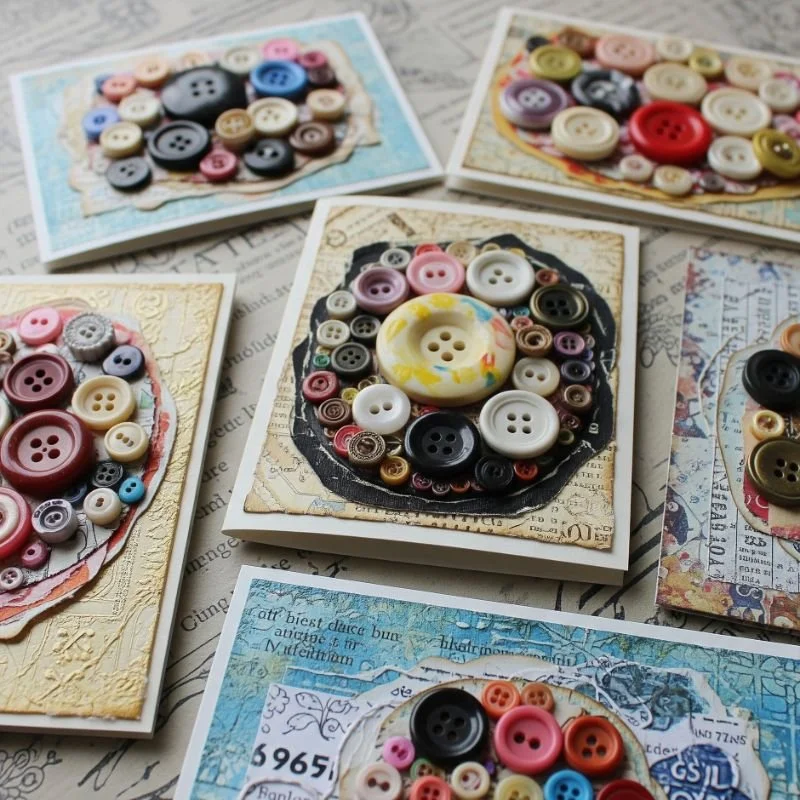 Design extraordinary greeting cards by incorporating buttons into mixed media compositions. Combine buttons with paper, fabric, stamps, and paint to create dimensional cards for any occasion. Use buttons as flower centers, balloon strings, or decorative borders. Layer papers and textures before adding button elements for professional results. It's like sending miniature art pieces through the mail! Create birthday cards with button ages, wedding cards with white button hearts, or thank you cards with button flowers. The tactile element makes cards memorable keepsakes. Consider removable button elements recipients can repurpose. Use quality cardstock to support button weight. These handmade cards show thoughtfulness beyond store-bought options. Make sets for year-round occasions or create custom designs for special events. Each card becomes a unique expression of creativity and care.