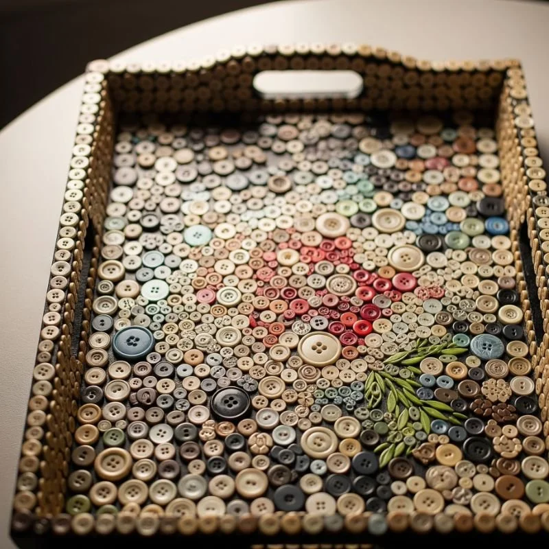 Elevate entertaining by creating stunning serving trays decorated with button mosaics. Start with wooden trays, planning designs from simple borders to elaborate patterns covering entire surfaces. Arrange buttons by color to create images, abstract designs, or geometric patterns. Seal with resin or heavy-duty mod podge for durability and water resistance. It's like serving refreshments on functional artwork! Choose food-safe sealers for direct food contact or use trays for non-food items. Create seasonal designs changing with holidays or events. These trays become conversation pieces during gatherings while serving practical purposes. Mix vintage and modern buttons for eclectic appeal or maintain consistent styles for cohesive looks. The finished trays work beautifully as decorative elements when not in use, displayed on stands or hung on walls.