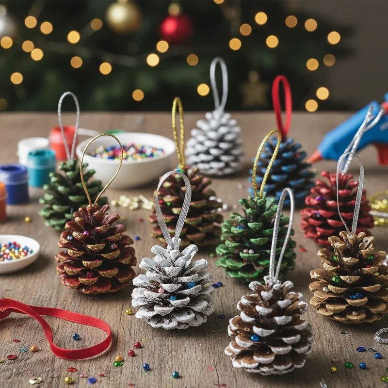 Painted pinecones bring nature indoors while providing blank canvases for creative expression that costs absolutely nothing except paint and imagination. Collect pinecones during autumn walks, choosing fully opened specimens in various sizes for diverse ornament options throughout your tree. Clean pinecones by baking them on low heat to kill any insects and remove sap, ensuring they're completely cooled before crafting. Paint pinecones in traditional holiday colors like red and green, or choose unconventional palettes featuring metallics, pastels, or ombre effects. Add glitter while paint remains wet for sparkly finishes, or let paint dry completely before adding detail work with contrasting colors. Attach hanging ribbons by wrapping wire around top scales or using hot glue for more permanent connections that withstand active households. You can leave pinecone tips unpainted for natural contrast or dust them with white paint simulating snow-covered branches. These rustic ornaments complement farmhouse, woodland, or traditional Christmas decorating styles while introducing organic shapes among manufactured decorations.