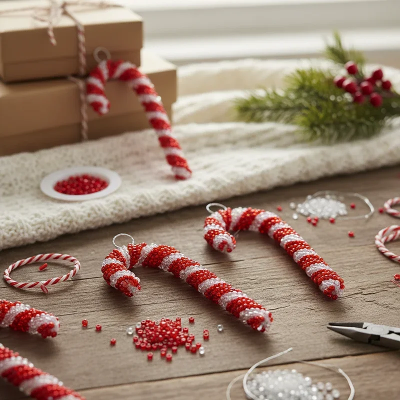 Beaded candy canes combine jewelry-making techniques with Christmas iconography, resulting in sparkly decorations that catch and reflect tree lights beautifully. Purchase red and white pony beads along with pipe cleaners in coordinating colors to form the structural base for these simple ornaments. String beads onto pipe cleaners in alternating color patterns that mimic traditional candy cane stripes, leaving two inches unbeaded at each end. Bend the beaded pipe cleaner into the classic candy cane hook shape, twisting the unbeaded ends together to secure the curved form. Add a ribbon loop at the top for hanging, or create elaborate multi-strand candy canes by twisting several beaded pipe cleaners together. These kid-friendly ornaments require minimal supervision and allow children to practice patterns, counting, and fine motor skills through engaging play. Experiment with different bead sizes, colors, or patterns to create unique variations on the classic red-and-white theme everyone recognizes. The finished ornaments weigh very little and won't damage delicate tree branches, making them perfect for every tree type.