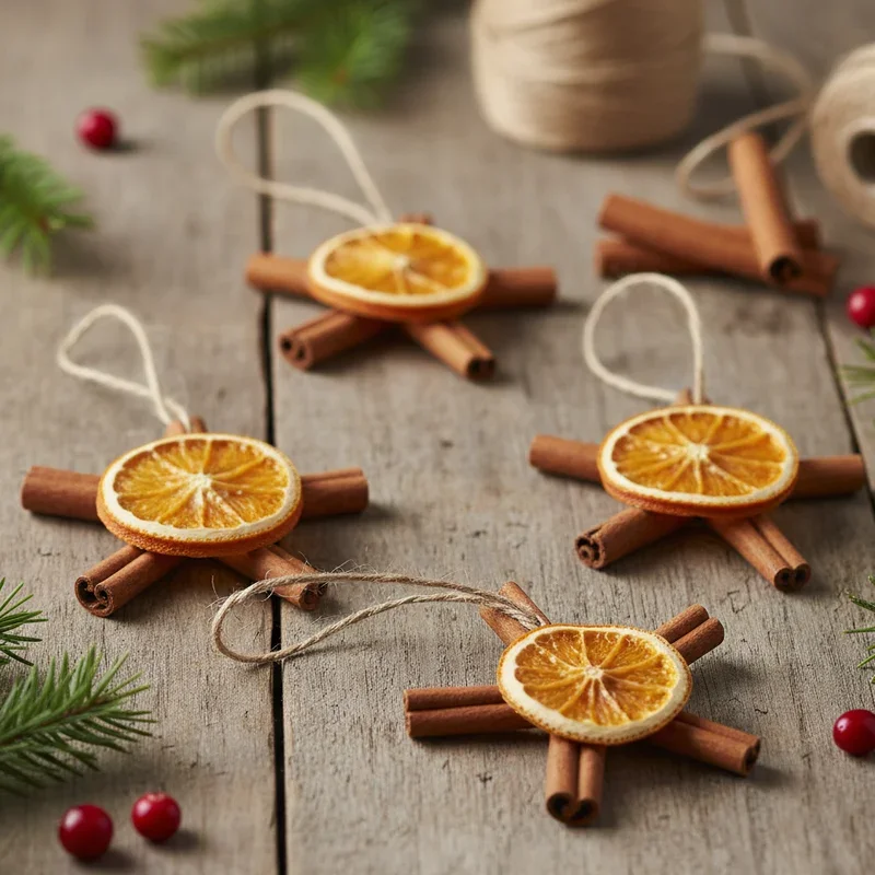 Cinnamon stick stars fill your home with warm, spicy fragrance while adding rustic charm to your Christmas tree or wreaths beautifully. Gather five cinnamon sticks of equal length and arrange them in a star shape, overlapping the ends at five connection points. Use hot glue to secure each intersection, working carefully to create sturdy bonds that will last through many holiday seasons. Tie twine or ribbon around each connection point both for extra security and decorative appeal that enhances the natural aesthetic. Add small embellishments like miniature pinecones, dried berries, or tiny bells at the star's center for personalized touches reflecting your style. The natural brown tones complement any color scheme while the cinnamon scent provides aromatherapy benefits throughout December and beyond. These ornaments work equally well on trees, as package toppers, or strung together as garland for mantels and doorways. Kids can help with arranging sticks while adults handle the hot glue, making this a perfect collaborative family project.
