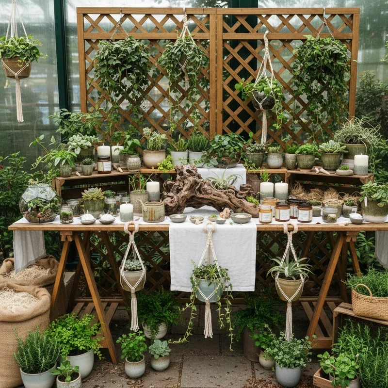 Nothing breathes life into a display quite like actual living things, whether it's a small potted succulent or fresh flower arrangements that complement your aesthetic. Greenery softens hard edges, adds organic appeal, and creates an inviting atmosphere that makes your booth feel less like a sales table and more like a curated experience. Fake plants work too if maintaining real ones seems daunting, just invest in quality silk versions that won't scream "dollar store." Small herbs in vintage tins work wonderfully for natural product vendors, while air plants in geometric holders suit modern crafters. The key is restraint; you're not creating a jungle, just adding touches of life that enhance rather than overwhelm. These elements also provide natural height variation and can hide less attractive display mechanics.