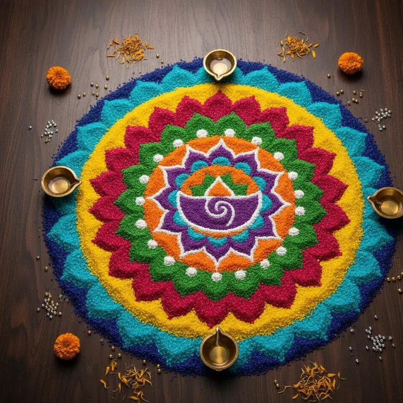 Create reusable rangoli patterns using adhesive foam sheets that stick to floors without damaging surfaces or leaving residue. This modern solution allows apartment dwellers to enjoy traditional floor art without permanent alterations or messy cleanup. Cut foam into traditional motifs like peacocks, diyas, or geometric patterns that combine into larger rangoli designs. You're democratizing rangoli art, making it accessible to everyone regardless of artistic skill or living situations. The foam's thickness creates subtle 3D effects that photograph beautifully for social media sharing and memories. Pre-made stickers save time during busy preparations while maintaining the visual impact of hand-drawn rangoli perfectly. Store foam pieces flat for next year, building collections that grow more elaborate with each celebration. Kids can safely help place stickers, involving them in traditions without worry about powder inhalation.
