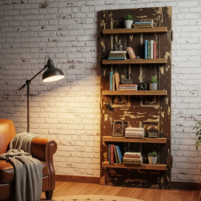 Give discarded doors a second chance at life as unique bookshelves that add architectural salvage charm! Solid wood doors work best, found at salvage yards, renovation sites, or even your own renovation projects. Cut the door in half lengthwise for two tall, narrow shelves, or leave whole for a statement piece. Add shelf brackets to the door's panels, utilizing the existing frame structure for support. Mount the door to your wall vertically or horizontally depending on space and preference. The paneled design creates natural compartments perfect for organizing different book categories. Original paint, hardware, and patina add character money can't buy. Sand and refinish for a fresh look or preserve the weathered finish for authentic vintage appeal. Include the doorknob as a quirky coat hook or bookmark holder. This upcycled approach costs virtually nothing if you source free doors, maybe $30 for brackets and hardware. Your bookshelf becomes a conversation piece about sustainability and creativity.