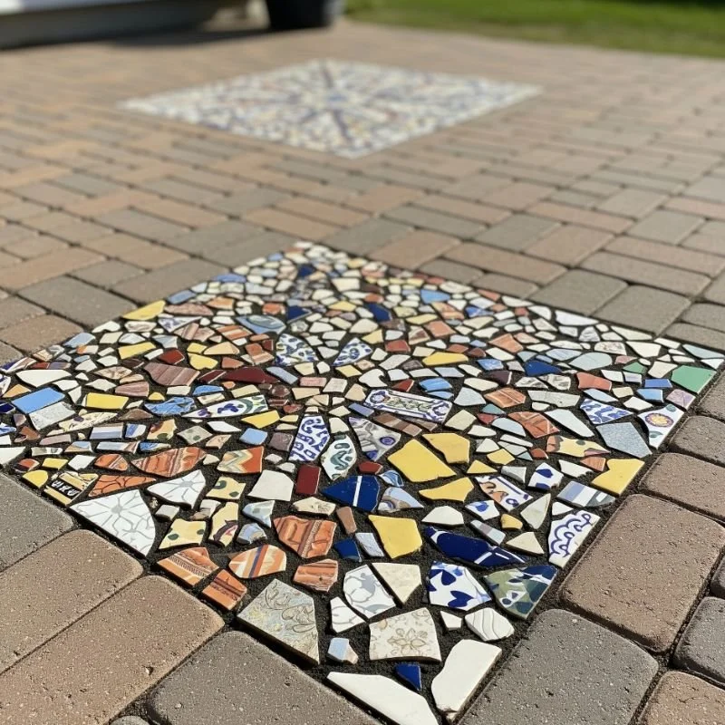 Turn shattered dreams into stunning reality by collecting broken tiles from renovation projects, tile shops, or your own mishaps! This mosaic approach transforms waste into artistic patio surfaces costing virtually nothing. Sort tiles by color to create planned designs or mix randomly for eclectic patterns. Break larger pieces into manageable sizes using hammer and cloth bag. Arrange pieces on concrete base or directly in mortar bed, leaving small gaps for grout. The irregular shapes create dynamic visual texture while hiding imperfections. Seal finished surface to prevent moisture damage and ease cleaning. This technique allows incredible creativity, from Mediterranean-inspired designs to modern geometric patterns. Local tile shops often give away broken pieces, making materials essentially free.