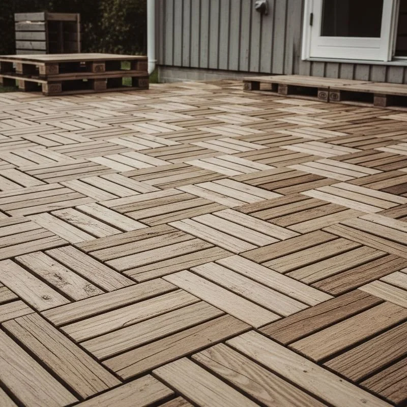 Repurpose shipping pallets into unique wooden patio pavers by disassembling and cutting boards into uniform sections! This virtually free material creates warm, rustic surfaces perfect for covered patio areas. Select heat-treated pallets (marked HT) avoiding chemical-treated varieties. Cut boards into equal lengths, sand smooth, and treat with exterior wood preservative. Arrange in patterns like parquet flooring or simple grid designs. Install over level gravel base with landscape fabric barrier. The wood provides comfortable barefoot surface while the modular design allows easy replacement of damaged sections. This technique works best in protected areas with good drainage. Expect 3-5 year lifespan, but free materials make replacement affordable. The recycled nature appeals to eco-conscious homeowners.