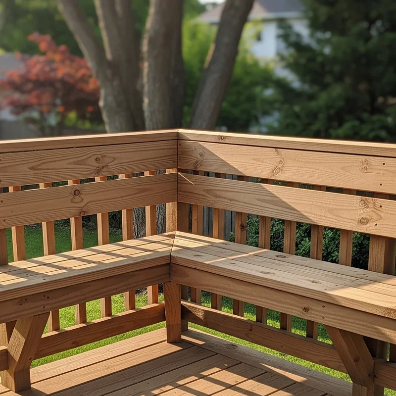 Maximize every inch with railings that double as seating, creating functional boundaries that invite relaxation! Build bench backs at standard railing height, with seats extending into your deck space. This design provides safety barriers while adding substantial seating without cluttering floor space with furniture. Include storage beneath seats for cushions, toys, or gardening supplies. The continuous seating encourages conversation and creates natural gathering zones. Use weather-resistant materials and add drainage gaps to prevent water pooling. Cushions transform hard surfaces into comfortable lounging spots, easily removed for cleaning. The built-in nature means no furniture to store or maintain separately. Corner sections become cozy nooks perfect for morning coffee or evening wine. Your deck gains stadium-style seating that makes every gathering more comfortable. This solution particularly shines on smaller decks where space is precious!
