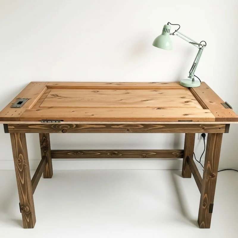 Transform an old door into a spacious desk surface that tells a story while providing ample workspace for all your projects. Solid wood doors, especially vintage ones, offer built-in character with panels, textures, and patina that new materials can't match. Sand, stain, or paint to match your style, then attach legs ranging from hairpin to traditional turned wood. It's like giving architectural salvage a second life as functional art! The generous surface area accommodates multiple monitors, paperwork, and coffee cups with room to spare. Hollow-core doors work too for lighter setups and tighter budgets. This eco-friendly option keeps materials out of landfills while creating a unique conversation piece. The door's original hardware holes can cleverly accommodate cable management.