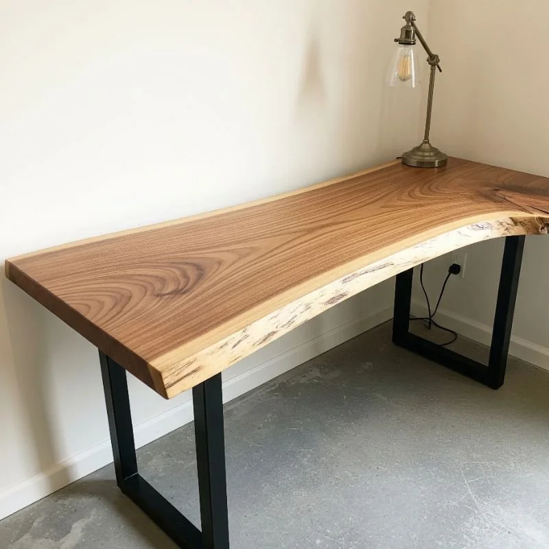 Create a show-stopping desk using live edge wood slabs that celebrate nature's organic beauty while providing a unique workspace. These pieces retain the natural tree edge, complete with bark or smooth curves that make each desk one-of-a-kind. Support with minimalist legs that don't compete with the wood's natural drama. It's like bringing a slice of forest into your office! The irregular edges add artistic flair while the solid wood provides durability. Finish with clear sealers that enhance grain patterns and protect the surface. These pieces become heirloom furniture that tells the story of the tree. The connection to nature can improve focus and reduce stress during work sessions.