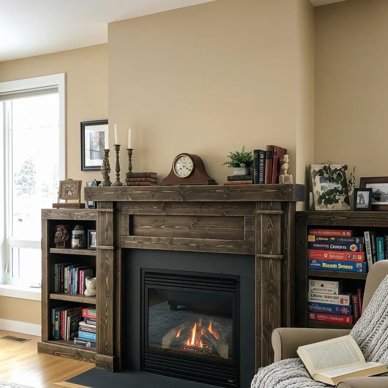 Maximize space and visual impact by flanking your fireplace with built-in bookshelves that create a library-like atmosphere. This project transforms plain walls into functional storage while making your fireplace the centerpiece of an entire wall unit. Build simple box frames from plywood and 1x2s, customizing dimensions to fit your specific space perfectly. Paint shelves to match existing trim for seamless integration or choose contrasting colors for bold statements that define zones. Include cabinet doors on lower sections to hide clutter while displaying books and decor on open upper shelves. Install subtle LED strip lighting under shelves to highlight displayed items and create ambient evening glow. The symmetry of matching bookcases creates balance and order that makes rooms feel larger and more organized. This combination of function and beauty turns ordinary living rooms into sophisticated spaces that encourage both reading and relaxation.