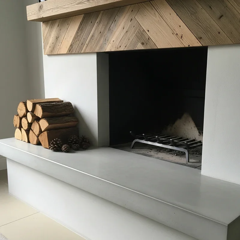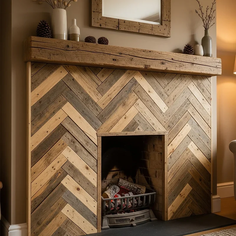 Embrace rustic charm by covering your fireplace surround with weathered pallet wood that adds instant character and warmth. Source free pallets from local businesses, choosing heat-treated wood marked "HT" for safety around fireplaces. Disassemble pallets carefully, removing nails and selecting pieces with interesting grain patterns and color variations for visual depth. Sand lightly to remove splinters while preserving the weathered patina that gives pallet wood its distinctive appeal. Arrange boards in patterns like herringbone, chevron, or simple horizontal placement that complements your room's style. Secure boards with construction adhesive and finishing nails, ensuring everything is level for professional-looking results. Seal the wood with fire-retardant coating for safety while preserving the natural texture and color you love. This eco-friendly option costs virtually nothing but delivers expensive-looking results that make your fireplace a conversation starter.