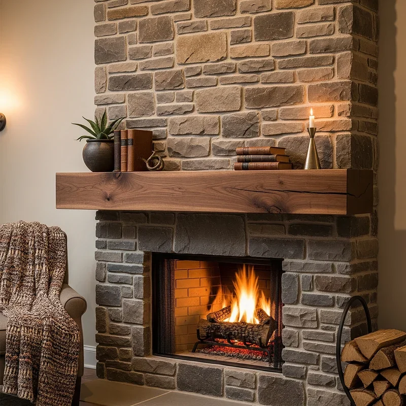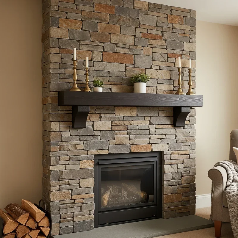 Achieve the look of full stone masonry without structural reinforcement using lightweight stone veneer that transforms fireplaces dramatically. These manufactured stones look incredibly realistic while weighing fraction of natural stone, making DIY installation manageable. Prepare your surface with metal lath and scratch coat mortar that creates a stable base for stone adhesion. Start from the bottom, working upward with corner pieces first to establish straight lines and professional edges. Mix various sizes and colors randomly for natural appearance, avoiding patterns that look obviously planned or repetitive. Apply mortar to both wall and stone backs for maximum adhesion that prevents future loosening or falling. Grout joints carefully with mortar bag for clean lines, wiping excess before it dries completely. This upgrade adds substantial home value while creating a stunning focal point that looks like expensive masonry work.