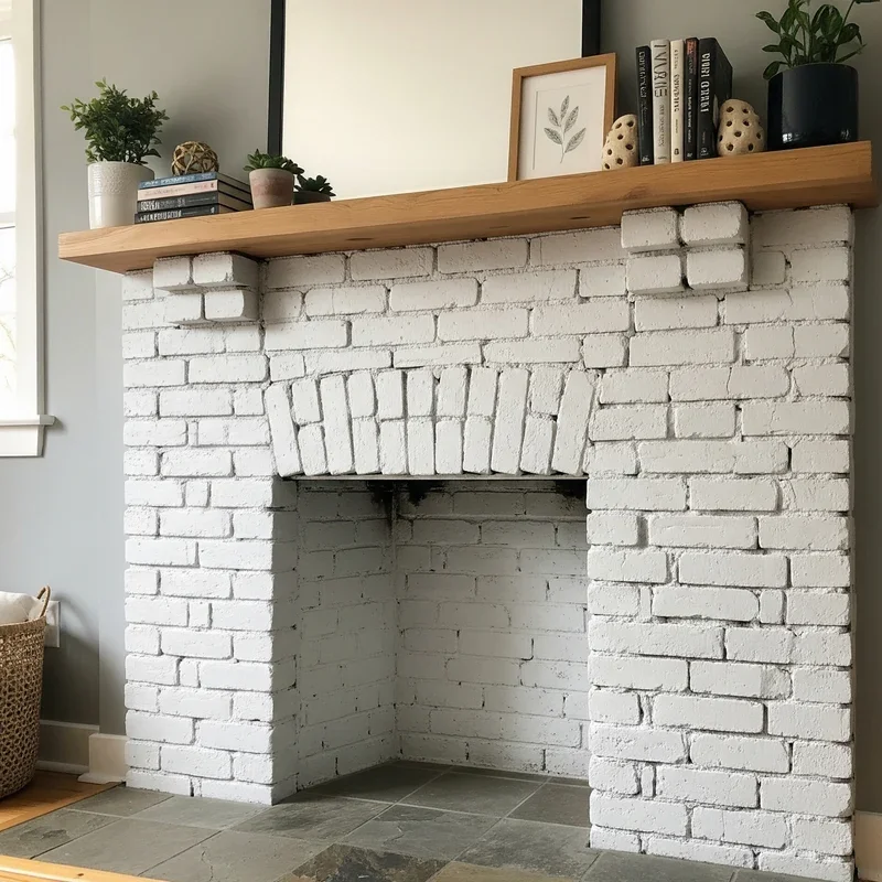 Breathe new life into tired brick fireplaces with paint that completely transforms their personality from dated to dramatic. This budget-friendly makeover requires minimal supplies but delivers maximum impact that makes old brick look intentionally designed rather than inherited. Clean brick thoroughly with trisodium phosphate, then apply primer specifically designed for masonry to ensure paint adhesion that lasts. Choose light colors to brighten dark rooms or go dramatic with black for sophisticated contrast that highlights architectural details beautifully. The texture of brick remains visible through paint, adding dimension that flat walls can't achieve naturally. Consider painting only the surround while leaving the firebox natural for interesting contrast that defines different zones. German schmear technique using watered-down joint compound creates a weathered European look that's hugely popular right now. This transformation takes just a weekend but changes your room's entire atmosphere for years.
