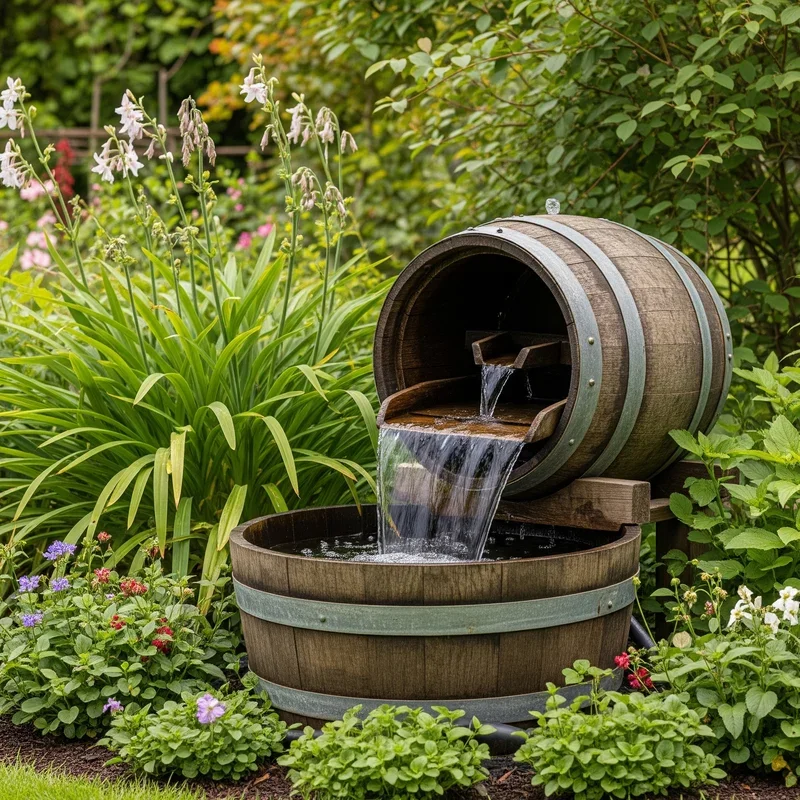 3. Wine Barrel Water Feature - The Rustic Charmer