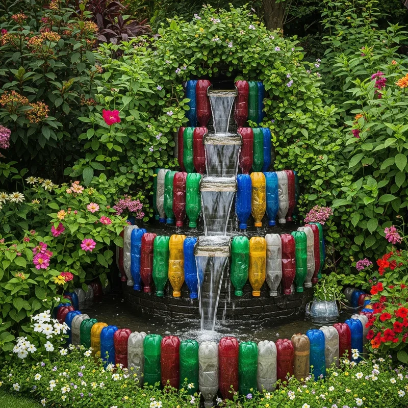9. Recycled Bottle Fountain - The Upcycling Hero