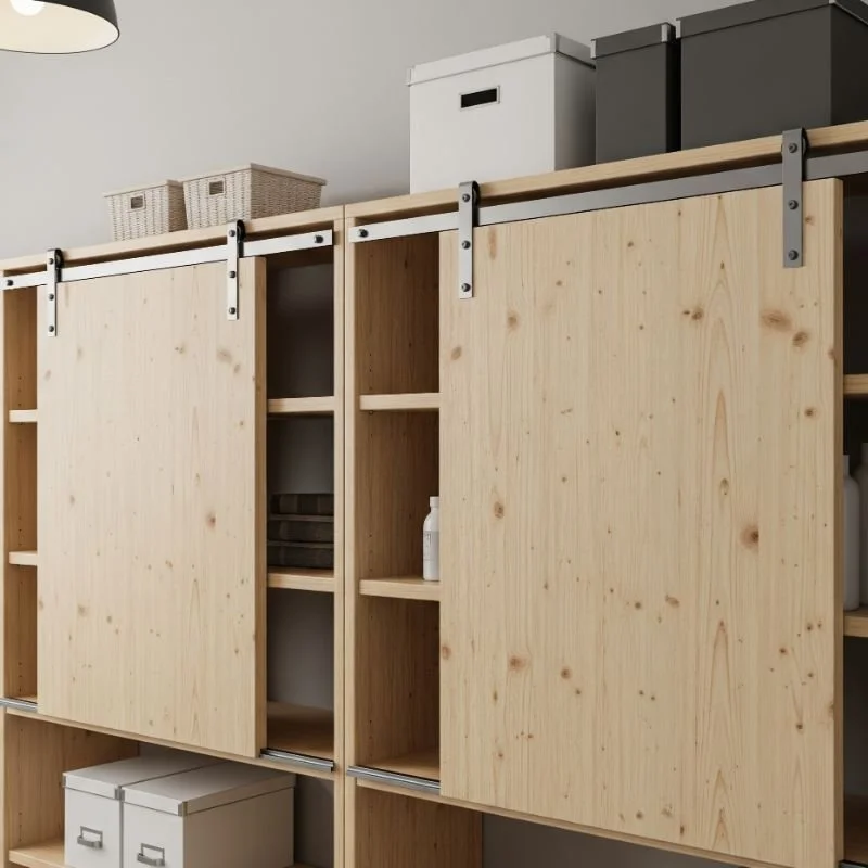 Bring farmhouse charm to your shelving with miniature sliding barn doors that add both function and serious style points. This trendy solution uses a scaled-down version of the popular barn door hardware, creating smooth-gliding panels that cover shelves when needed. Build lightweight doors from reclaimed wood, plywood, or even hollow-core materials to keep the sliding action effortless. It's like turning your bookshelf into a rustic design statement! Mount the track above your shelving unit, ensuring proper clearance for the doors to slide past each other. The exposed hardware becomes part of the aesthetic appeal. Paint or stain doors to match your décor, or go bold with contrasting colors. This option works brilliantly for entertainment centers, pantries, or office storage.