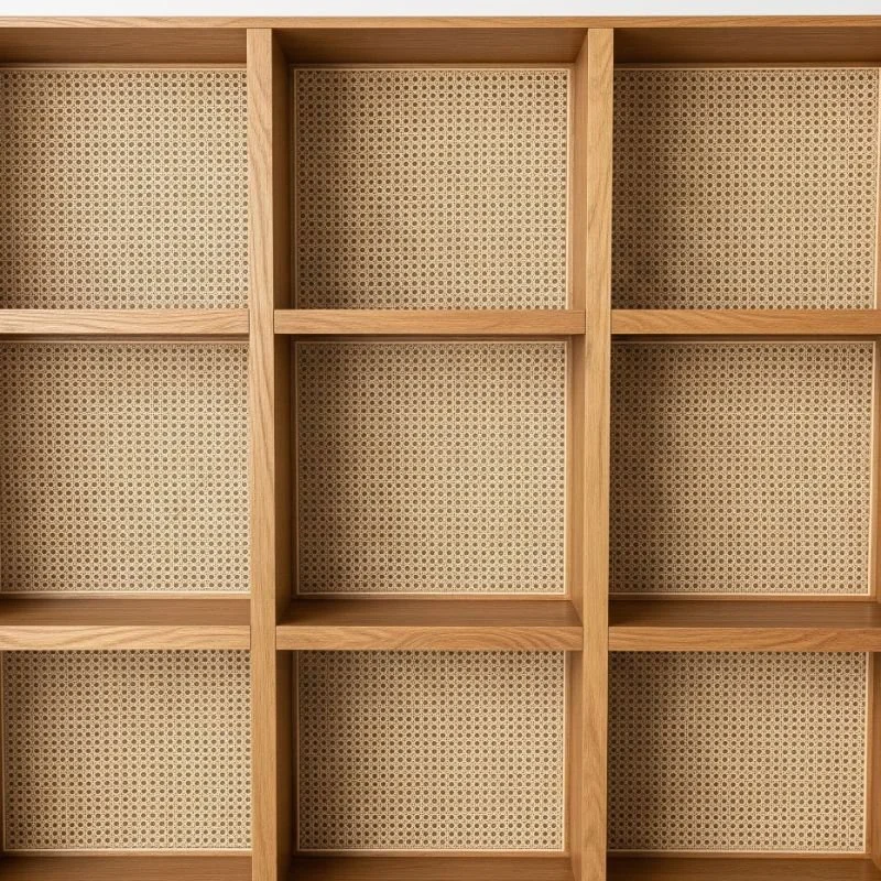 Incorporate trendy cane webbing into custom panels that provide partial concealment while maintaining visual lightness. This rattan material offers texture and warmth while allowing air circulation and filtered visibility. Build simple frames and stretch pre-woven cane webbing across, securing with adhesive and trim. It's like giving your shelves fashionable sunglasses that never go out of style! The natural material complements both modern and traditional interiors. Paint frames to match your décor or leave natural for organic appeal. This solution works beautifully in bedrooms, living rooms, or any space where you want sophisticated texture. The semi-transparent nature helps maintain an open feel while softening the visual impact of stored items.