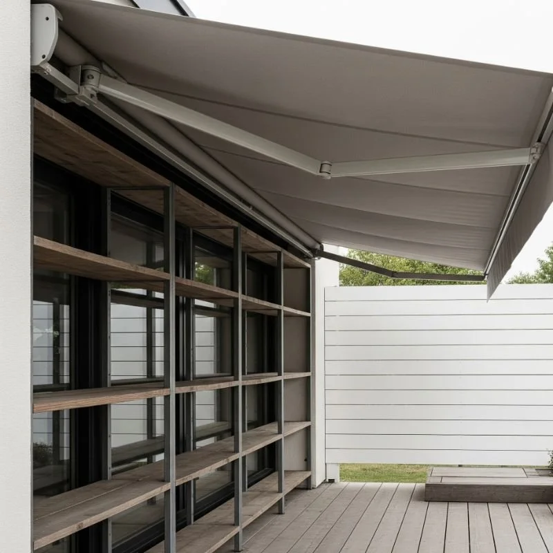 Design a retractable awning-style cover that rolls up like a window shade when you need shelf access. This innovative approach uses spring-loaded rollers and durable canvas to create smooth operation. The industrial-meets-residential aesthetic adds unique character while solving storage display issues. It's like having a convertible roof for your shelves! Mount the roller mechanism at the top of your shelving unit and weight the canvas bottom for proper hanging. Choose canvas colors and patterns that enhance your décor. This solution works particularly well for tall shelving units or garage storage. The retractable nature means you can quickly hide or reveal contents depending on the occasion. Add stenciled designs or fabric paint for personalized style.