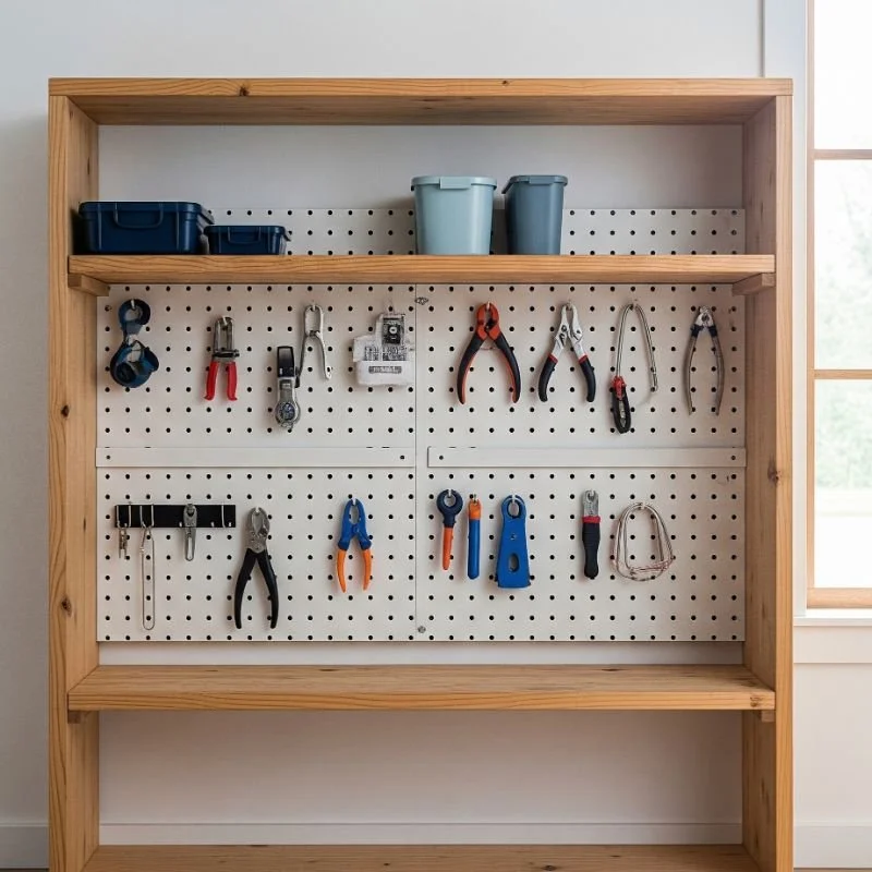 Create a versatile covering system using pegboard panels that offer both concealment and additional storage opportunities. Cut pegboard to fit your shelf openings and paint in colors that complement your space. The perforated surface allows for hooks, small shelves, or organizers, turning your cover into functional storage. It's like adding a Swiss Army knife to your shelving! Mount panels on sliding tracks or hinges for easy access to shelves behind. The industrial look works well in craft rooms, garages, or modern kitchens. Customize hole patterns by filling some with wood putty before painting for a unique design. This solution particularly appeals to those who love visible organization and frequently changing storage needs.