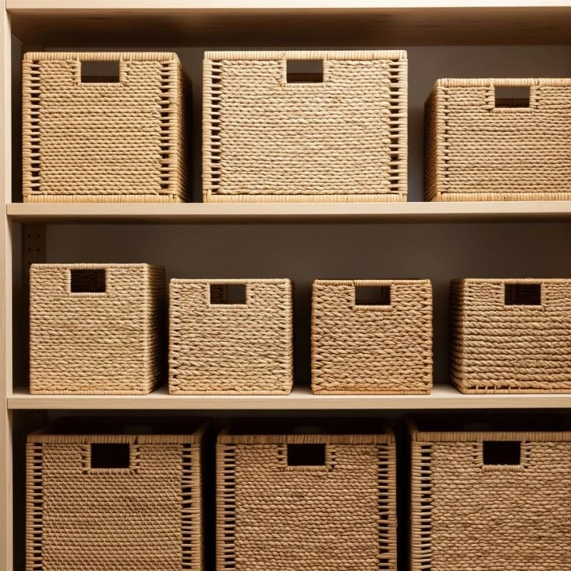 Line your shelves with attractive woven baskets that serve double duty as storage containers and visual screens. This solution organizes contents while presenting a unified, textured front that hides miscellaneous items. Choose baskets in consistent materials and colors for a cohesive look. It's like giving your shelves a coordinated outfit! Label baskets discreetly for easy identification or leave unmarked for a cleaner appearance. Natural materials like seagrass, rattan, or bamboo add organic warmth. This method works especially well in bathrooms, closets, or pantries where categorized storage makes sense. The basket solution provides the flexibility to remove individual containers as needed while maintaining overall visual consistency.