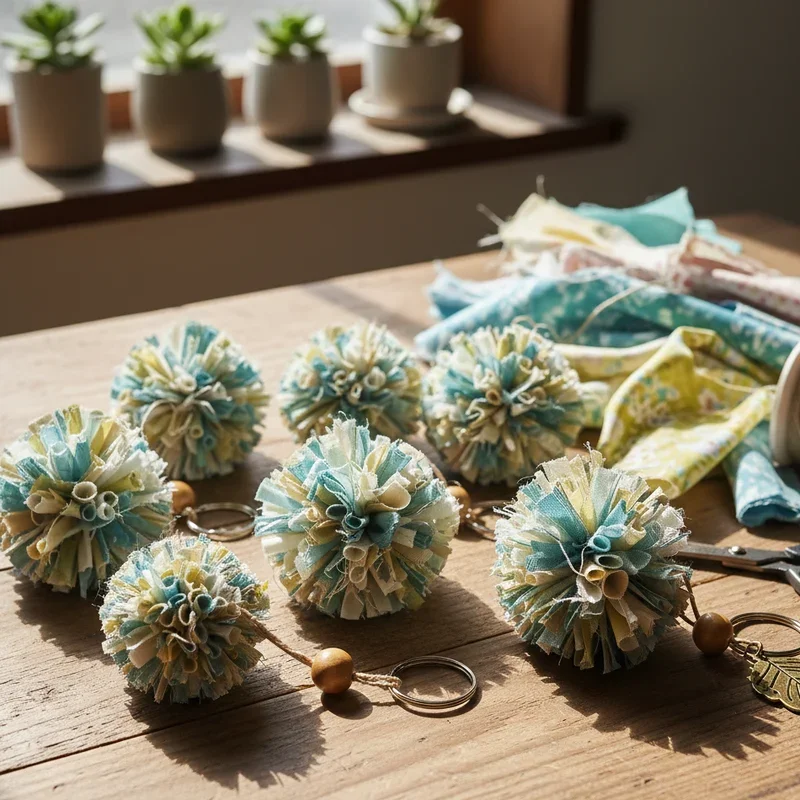 Got a drawer full of fabric scraps? Transform them into fluffy, colorful pom-pom keychains that add whimsy to any key ring! This zero-waste project requires fabric scraps, sharp scissors, and strong thread. Cut fabric into strips, then wrap around a pom-pom maker or cardboard template. The more layers you add, the fuller your pom-pom becomes. Tie tightly in the center, trim into a perfect sphere, and attach to keychain hardware. Mix different fabric patterns within one pom-pom for a unique multicolored effect. Velvet creates luxurious pom-poms while cotton gives a casual vibe. These soft keychains double as stress relievers; there's something therapeutic about squishing a fluffy pom-pom! They're perfect for using up fabric remnants from other projects, making them budget-friendly and sustainable. Plus, they add a playful touch that makes finding keys in a dark bag much easier.