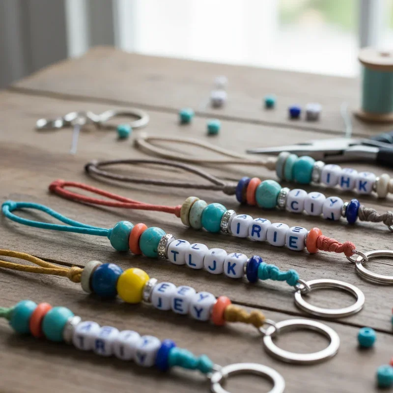 Beaded letter keychains require minimal skills and produce quick, satisfying results.