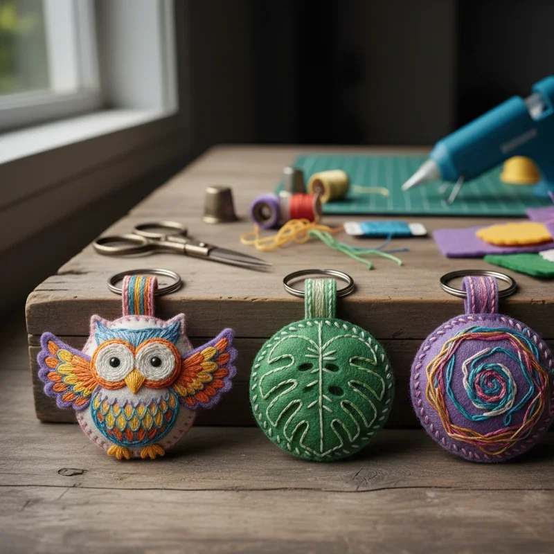 Combine the cozy texture of felt with the artistry of embroidery for keychains that are soft, durable, and completely customizable! Using felt sheets, embroidery floss, and basic stitching skills, create designs ranging from simple monograms to elaborate scenes. Cut felt into shapes like hearts, circles, or animals, then embroider designs using various stitches. Blanket stitch around edges adds decorative finishing while preventing fraying. Layer different colored felts for dimensional effects or stuff lightly for puffy keychains. These projects are perfect for beginners learning embroidery since felt is forgiving and doesn't require hoops. Create seasonal designs, zodiac symbols, or miniature portraits of pets. The softness makes them ideal for children's backpacks, preventing scratches while adding personality. Hand-embroidered keychains carry a special handmade charm that machine-made items can't replicate, making each piece truly one of a kind.