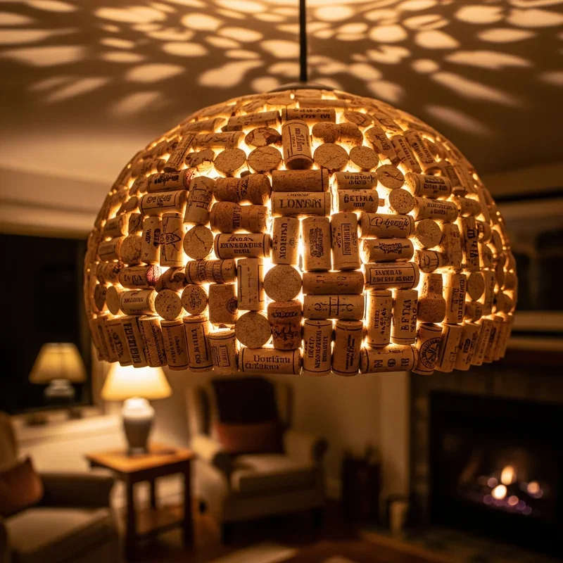 Got a collection of wine corks gathering dust? Transform them into a conversation-starting lampshade that tells the story of memorable dinners and celebrations. Slice corks into thin rounds and arrange them on a cylindrical shade frame, creating a mosaic pattern that's both artistic and meaningful. The natural variations in cork color and texture add organic beauty while the wine stains create subtle color accents. You can arrange corks randomly or create patterns like flowers or geometric designs. This eco-friendly project gives new life to materials that would otherwise be discarded. The cork also acts as a natural diffuser, creating warm, ambient lighting perfect for dining rooms or wine cellars where the theme feels especially appropriate.