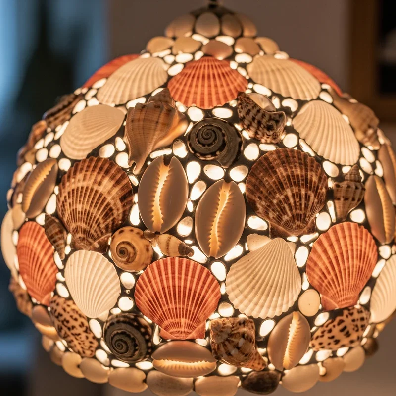 Bring beach vibes inland by creating a coastal-inspired lampshade adorned with shells, sea glass, and beach treasures. This project transforms vacation souvenirs into functional art that reminds you of ocean breezes and sandy toes year-round. Start with a plain shade and hot glue shells in patterns or random arrangements, mixing sizes and types for visual interest. Small shells work best as they're lighter and allow more light through. You can add starfish, sand dollars, or even small pieces of driftwood for extra coastal charm. The natural colors of shells complement any neutral color scheme while adding texture and dimension. This shade looks stunning in bathrooms, bedrooms, or any space where you want to create a relaxing, vacation-like atmosphere that transports you to the seaside.