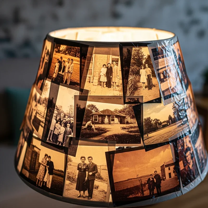 Turn your lampshade into a glowing photo album by creating a collage of meaningful pictures that illuminate your favorite memories. Print photos on regular paper or vellum for better light transmission, then arrange them on a plain white shade using mod podge. You can theme it around family, travels, pets, or mix everything for an eclectic memory lane. The photos take on a dreamy quality when backlit, creating a warm, nostalgic glow perfect for bedrooms or living rooms. Consider using black and white photos for a cohesive look or go full color for maximum impact. This personalized shade makes an incredible gift for weddings, anniversaries, or housewarmings. Every time you turn on the lamp, you're literally lighting up your happiest moments and surrounding yourself with love.