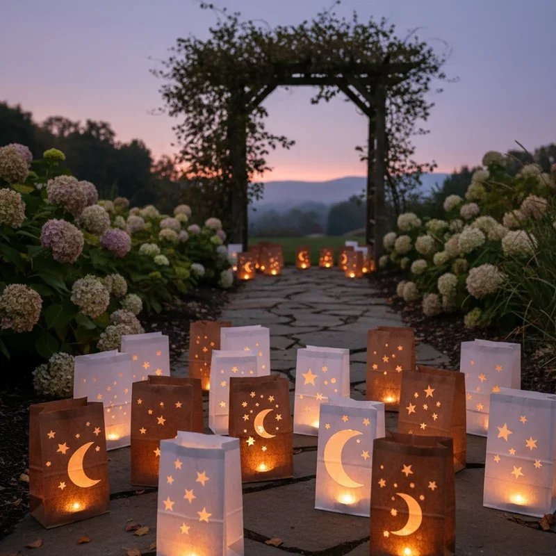 Create stunning pathway lighting or table decorations with simple paper bag luminaries that cost pennies but look like million-dollar décor! Cut decorative patterns into white or brown paper lunch bags using craft knives or decorative punches, creating designs from stars to intricate lace-like patterns. Weight bags with sand or rice at the bottom, nestle battery-operated tea lights inside, and watch ordinary bags transform into glowing art pieces. These luminaries work beautifully for special events, lining driveways for parties or creating romantic ambiance at outdoor weddings. Customize bags with stamps, stencils, or hand-drawn designs that reflect seasons or celebrations. The soft, warm glow filtering through paper creates inviting atmospheres that harsh electric lights can't replicate. Store flat when not in use, making them perfect for apartment dwellers with limited storage space.