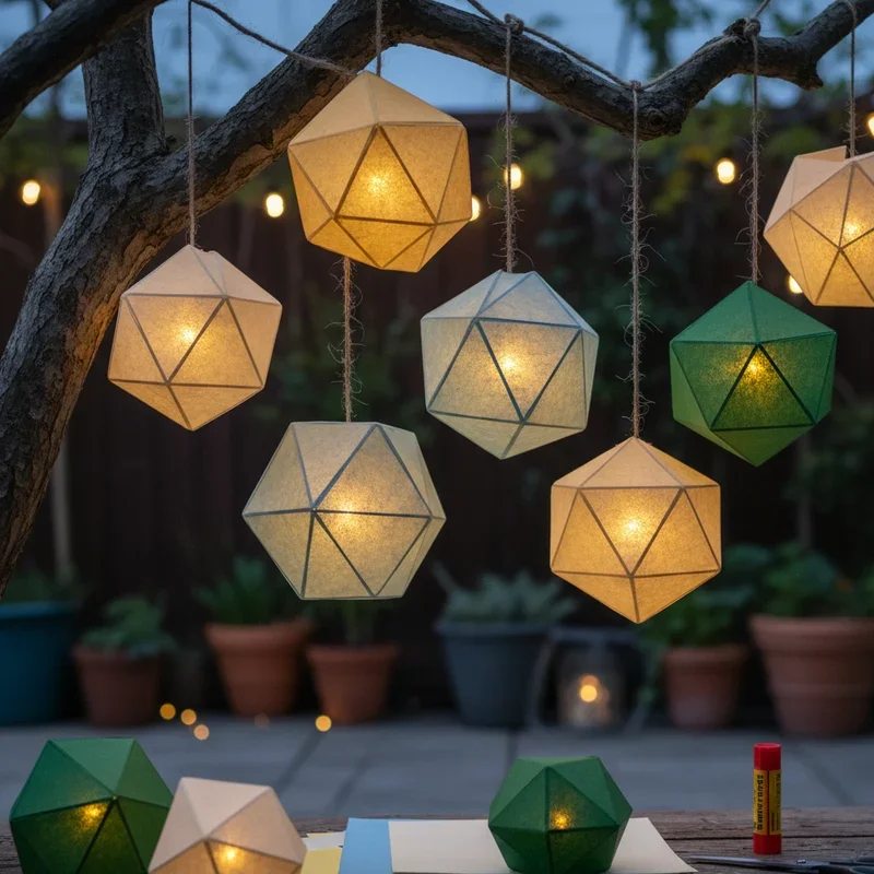 Master the art of paper folding to create intricate origami star lanterns that look like geometric sculptures when lit! Learn modular origami techniques to fold multiple identical units that connect into three-dimensional stars. Use translucent origami paper or vellum for best light transmission, choosing colors that complement your décor. Create various sizes by adjusting paper dimensions, building collections of stars that cluster beautifully together. Thread string lights through assembled stars or place battery tea lights inside for safe illumination. These delicate lanterns work best indoors where weather won't damage paper, adding artistic flair to bedrooms or living spaces. The meditative folding process provides relaxation while creating beautiful functional art pieces.