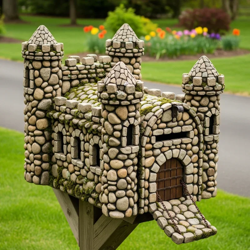 3. Stone-Covered Castle Mailbox