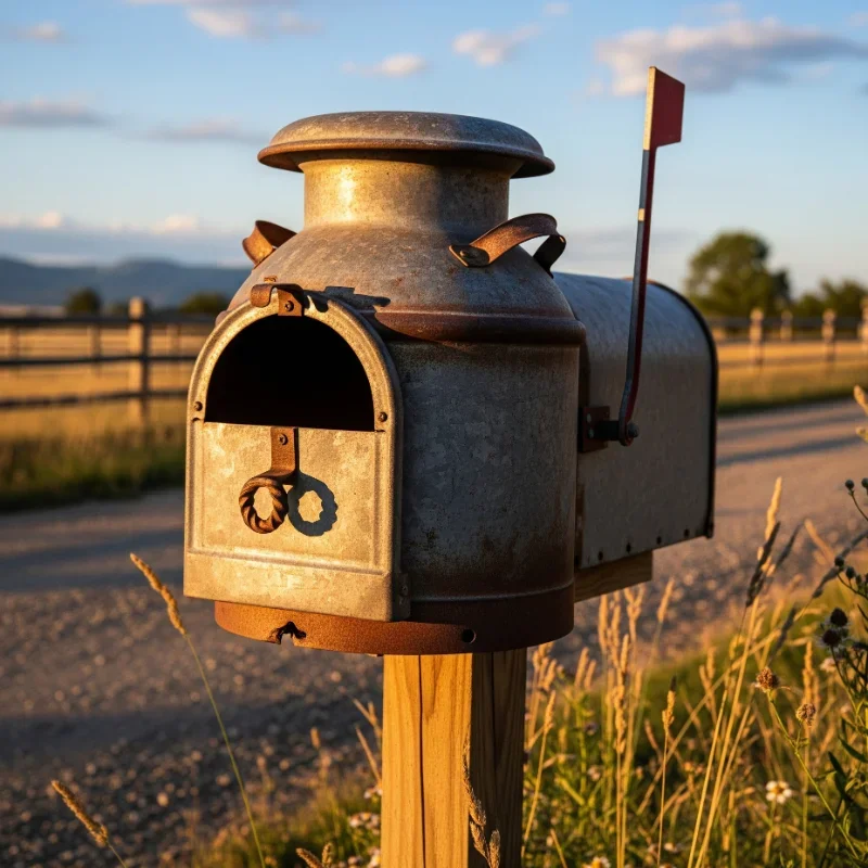 Give new life to an old milk can by converting it into a one-of-a-kind mailbox that oozes nostalgia! These sturdy metal containers are perfect for mailbox conversion because they're weatherproof and spacious. Start by cleaning the can thoroughly and checking for rust spots that need treatment. Cut a rectangular slot in the front for mail insertion, ensuring smooth edges to protect mail and hands. The original lid becomes your access door, maintaining the authentic vintage look. Paint it in classic milk can silver or go bold with bright colors that complement your home. Add vinyl lettering with your address or family name for easy identification. Mount it on a wooden post wrapped in rope for that complete farmhouse aesthetic. The height of milk cans makes them perfect for curbside placement without bending. This conversation starter combines function with a piece of American history!