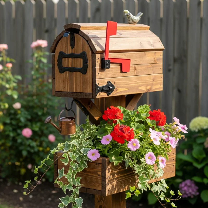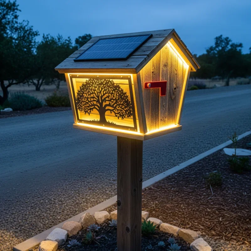 Combine eco-friendly technology with practical design in a mailbox that lights up your curb appeal! Install solar panels on the mailbox roof that charge during daylight hours. LED strips along the bottom illuminate your address numbers clearly after dark. Motion sensors activate additional lighting when someone approaches, providing security and convenience. The solar battery pack hides inside a weatherproof compartment. Choose warm white lights for welcoming ambiance or color-changing LEDs for holiday seasons. The mailbox itself can be any style, from traditional to modern, enhanced with strategic lighting placement. Add a lighted flag that glows when raised, making nighttime mail pickup easier. This sustainable solution eliminates wiring needs while reducing energy costs. The technology pays for itself through improved visibility and home security. Your mailbox becomes a beacon that works harder than just holding mail!