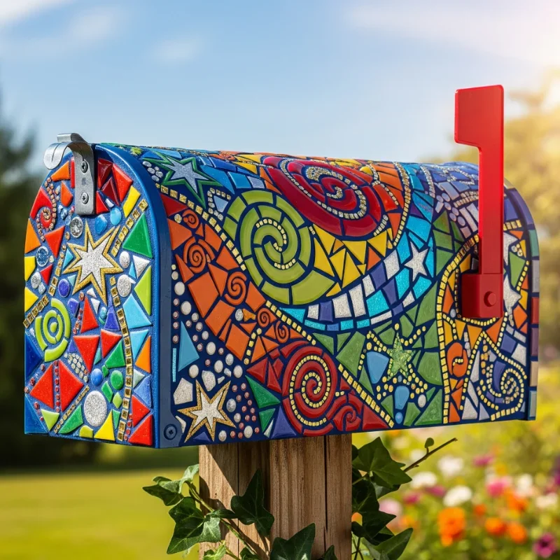 Turn your mailbox into a colorful work of art using mosaic tiles that reflect your personality! Start with a basic mailbox and plan your design, whether abstract patterns, nature scenes, or geometric arrangements. Use weatherproof adhesive to attach ceramic, glass, or stone tiles piece by piece. Grout carefully with outdoor-rated grout, sealing thoroughly for weather protection. Consider incorporating mirror pieces for sparkle or sea glass for beach themes. The mailbox flag can be tiled to match or provide contrast. Create address numbers using contrasting tile colors for easy reading. This labor-intensive project yields stunning results that improve with age. Each piece becomes unique as you select and place tiles individually. Mount on a post that complements the mosaic style. Your mailbox transforms into a landmark that brings art to everyday life. Neighbors will stop to admire your handiwork!