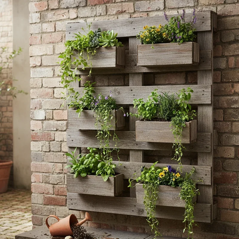 Transform that boring blank wall into a living, breathing garden that brings nature indoors or creates an outdoor oasis! Vertical pallet planters maximize growing space while adding stunning visual interest to any area. Simply stand a pallet upright against your wall, securing it firmly for safety. Line the back and bottom slats with landscape fabric to contain soil while allowing drainage. Fill the pocket spaces between slats with potting mix, then plant herbs, succulents, flowers, or trailing plants that'll cascade beautifully. This project works brilliantly for small-space gardening, letting you grow fresh herbs in tiny urban apartments or brighten up dull patio walls. The vertical arrangement creates eye-catching dimension that flat gardens simply can't match. Paint your pallet to complement your home's exterior or leave it weathered for organic charm. Water sparingly and watch your vertical garden flourish into an Instagram-worthy focal point!