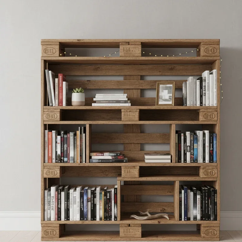 Bibliophiles and collectors, transform pallets into a bookshelf that showcases your treasures while making a decorative statement! Stack pallets horizontally, securing them firmly to create tiered shelving levels. You can leave pallets full-width for substantial shelving or cut them to fit specific spaces. The natural gaps between slats create dividers for organizing books by genre, size, or color. Sand all surfaces smooth to protect your beloved books from splinters or rough edges. Add backing boards if you want more substantial support, or leave it open for airy, industrial styling. Finish the wood to suit your home library aesthetic, perhaps dark stain for traditional elegance or bright white for Scandinavian simplicity. Mix books with decorative objects, plants, and personal mementos for curated shelf styling. Position this unit in living rooms, home offices, or bedrooms, creating both storage and visual interest that invites browsing and admiration.