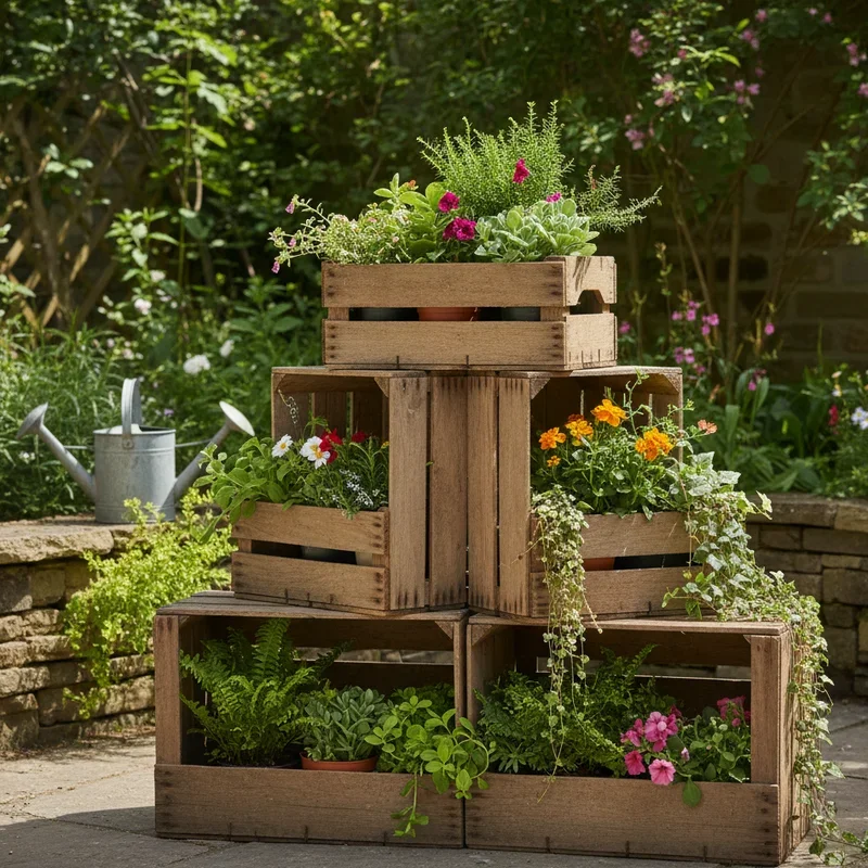 7. Tiered Wooden Crate Garden