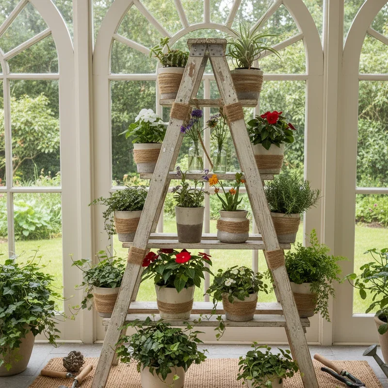 3. Vintage Ladder Plant Display