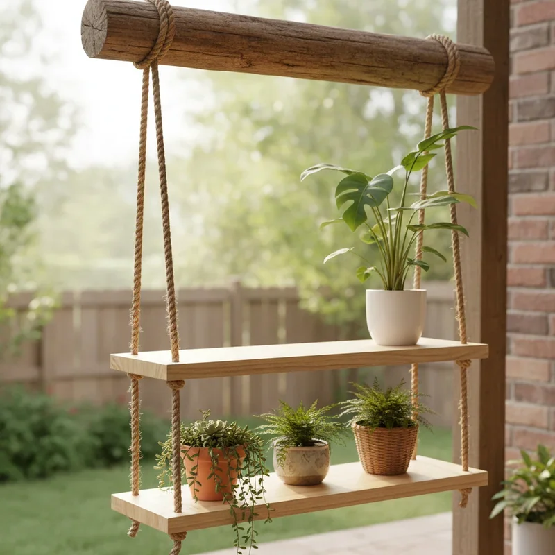 Channel playground nostalgia with hanging swing shelves for your plants! Drill holes in wooden boards, thread thick rope through, and knot securely underneath. Hang from ceiling hooks or wall brackets, creating floating gardens that save floor space. Use reclaimed wood for rustic charm or sleek painted boards for modern aesthetics. Multiple boards at different heights create tiered displays. The gentle movement adds dynamism to your space while the rope's natural texture complements organic plant forms. Adjust heights easily by retying knots, accommodating growing plants. These shelves work wonderfully in windows, allowing maximum light exposure. Add multiple swings at varying heights for cascading displays. Materials cost under fifteen dollars per shelf, but the visual impact feels much more expensive. The swing motion actually benefits plants, strengthening stems through gentle stress.