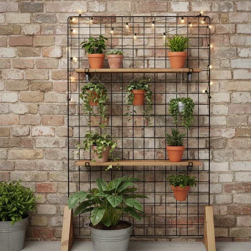 Transform wire grid panels into modern plant galleries! These versatile panels, often used for organizing, become stunning vertical gardens with simple modifications. Mount panels on walls or create freestanding displays with wooden frames. Attach small shelves, hooks, or baskets at various points for three-dimensional plant arrangements. Spray paint grids in copper, gold, or matte black for sophisticated looks. Use S-hooks to hang planters at different heights, creating dynamic compositions. The grid structure means infinite arrangement possibilities; change your display seasonally or whenever inspiration strikes. Add small pots with zip ties or wire for secure mounting. These systems work brilliantly for propagation stations, displaying cuttings in test tubes. Grid panels cost about twenty dollars each, providing extensive display space. The industrial aesthetic pairs perfectly with modern and minimalist decor styles.