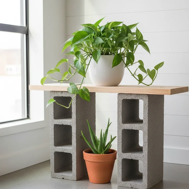 Sometimes the simplest solutions pack the biggest punch! Concrete blocks and wooden boards create an instantly customizable plant stand system. Stack blocks at various heights, slide boards between them, and voila! You've got a modern, industrial display. The beauty lies in its flexibility; rearrange whenever you want a new look. Paint blocks in bold colors or leave them raw for that brutalist aesthetic. Use reclaimed wood for warmth or sleek painted boards for a contemporary feel. This system grows with your plant collection; just add more blocks and boards. Create stepped displays for visual interest or keep everything uniform for minimalist appeal. Each block costs about two dollars, making this incredibly budget-friendly. The weight provides stability for larger plants while the modular nature means you're never locked into one configuration.