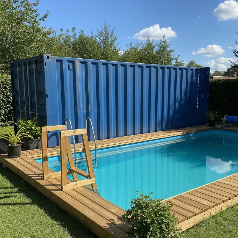 Repurpose a shipping container into a modern, industrial-style pool that's both eco-friendly and architecturally striking! These steel containers, typically 20 or 40 feet long, provide a ready-made watertight structure perfect for conversion. Start by reinforcing the container with additional steel framing to handle water pressure. Apply waterproof coating or install a pool liner to prevent rust and ensure longevity. Cut window openings for underwater viewing panels if desired, sealed with marine-grade glass. Install plumbing, filtration, and heating systems similar to traditional pools. Position above ground for easy access or partially bury for a more integrated look. Add decking, stairs, and modern lighting to complete the industrial aesthetic. The modular nature means you can relocate the pool if you move. This trendy option appeals to those wanting a unique pool that doubles as an architectural statement piece.