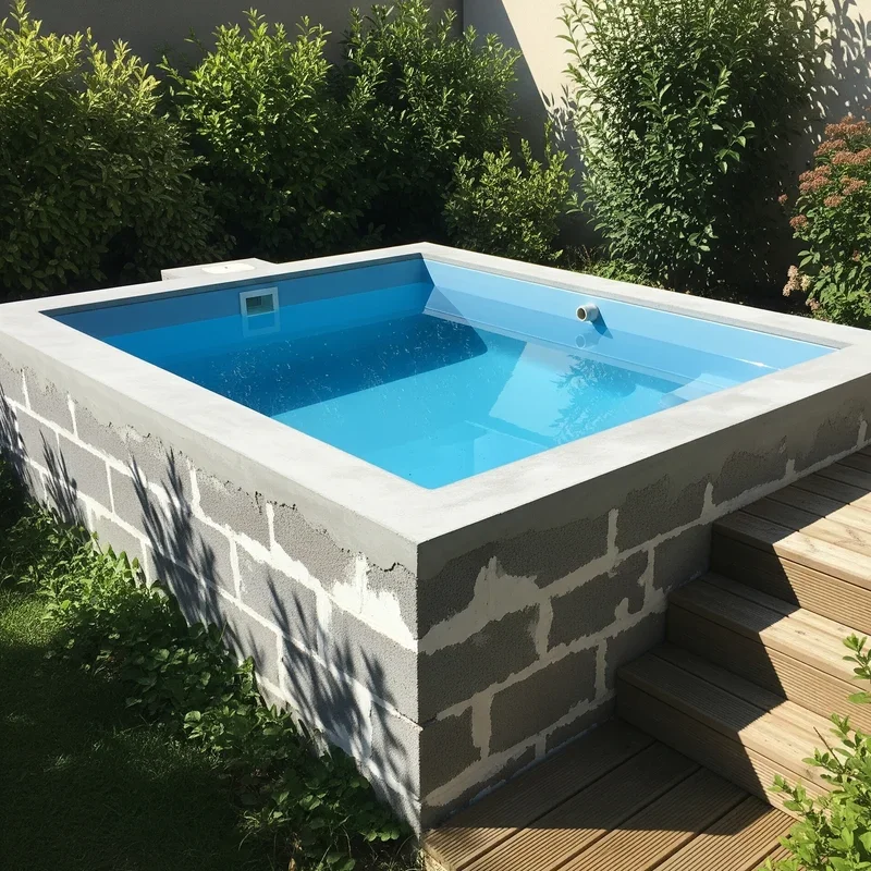 Construct a durable, customizable pool using concrete blocks that rivals professionally built installations! Stack concrete masonry units (CMUs) to create pool walls, filling cores with rebar and concrete for strength. This method allows complete customization of shape, size, and depth. Apply waterproof membrane or pool plaster to interior surfaces ensuring watertight construction. Install proper plumbing through block cores before filling with concrete, planning for filtration, returns, and drainage. Add tile or coping to the top edge for finished appearance and comfortable seating. Build steps directly into the structure using blocks for integrated access. This permanent solution requires more skill but produces professional results at DIY prices. The thermal mass of concrete helps maintain water temperature, reducing heating costs. With proper construction, these pools last decades, making the initial effort worthwhile for long-term enjoyment.