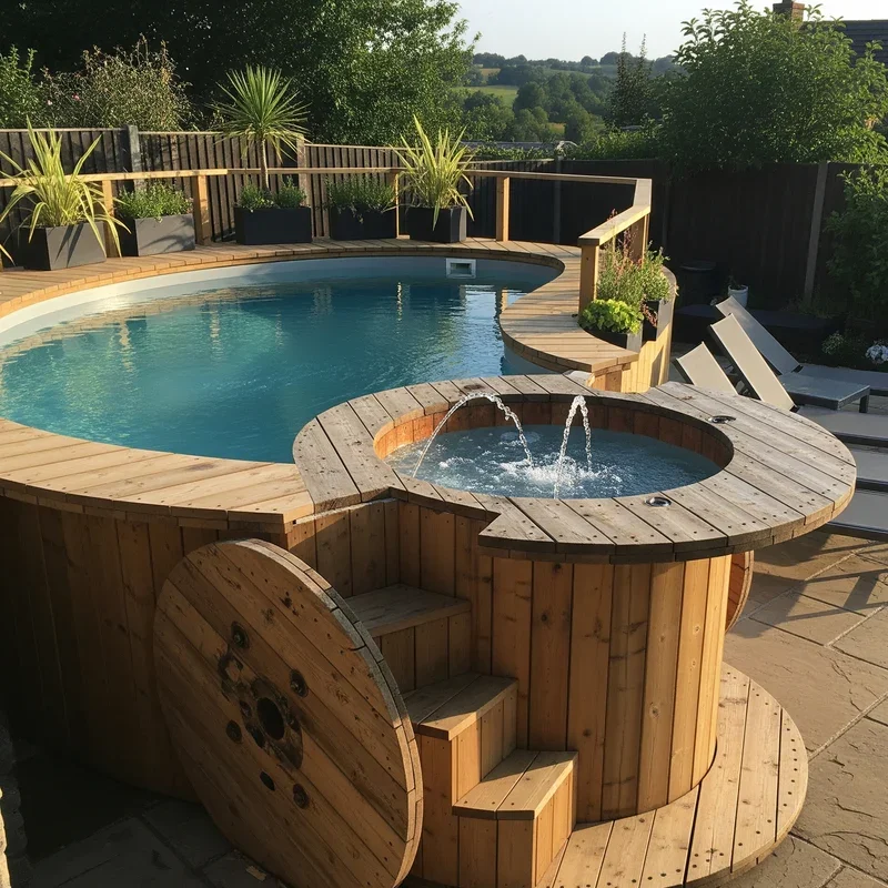 Create the perfect blend of pool and spa with a DIY spool that maximizes limited space! These hybrid designs typically measure 10-16 feet, larger than typical spas but smaller than pools. Build using concrete, fiberglass, or even above-ground methods, incorporating jet systems for spa functionality. Install dual heating systems allowing temperature adjustment for swimming or soaking modes. Add bench seating around perimeter at varying depths accommodating different uses. Include powerful jets for swimming resistance, essentially creating an endless pool in compact space. Design covers that partially retract, allowing swimming lanes while maintaining spa warmth in unused sections. This versatile option provides year-round use, exercise capabilities, and relaxation features without requiring extensive yard space. Perfect for smaller properties or those wanting both pool and spa benefits without maintaining separate systems.