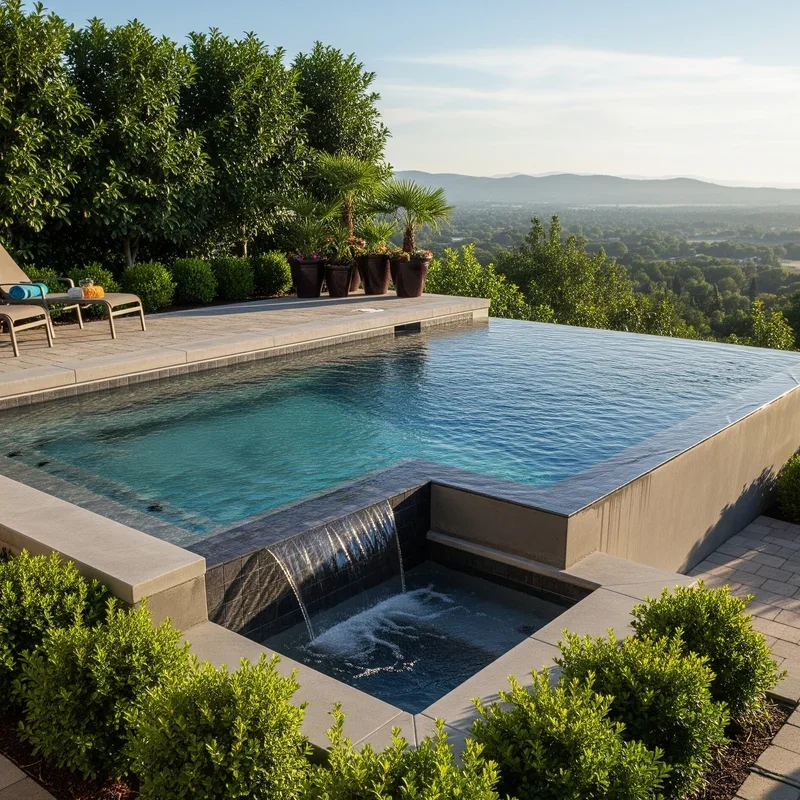 Create the luxurious appearance of an infinity pool without the complex engineering using clever DIY techniques! Build a raised edge on one side of your pool using acrylic panels or glass blocks, allowing water to flow over into a hidden catch basin. Install a recirculation pump returning water from the catch basin to the main pool. Position the pool to take advantage of natural views, making the edge appear to merge with horizons. For above-ground pools, build decking that conceals the pool edge while creating the vanishing edge effect from specific viewing angles. Add LED lighting along the edge for dramatic nighttime effects. Use dark pool liners enhancing the illusion of depth and continuity with surrounding landscapes. This sophisticated upgrade transforms ordinary pools into resort-worthy focal points that photograph beautifully and impress guests.