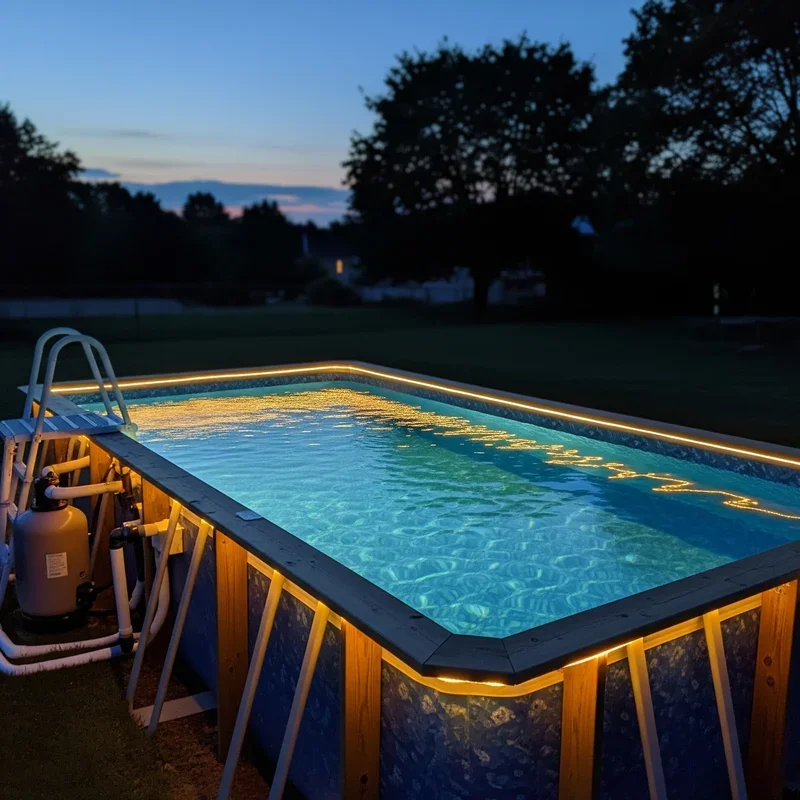 Illuminate your pool oasis with a DIY lighting system that extends swimming hours and creates magical nighttime ambiance! Install LED underwater lights around pool perimeter for even illumination and safety. Add color-changing options controlled by smartphone apps for party modes. Position landscape lighting around pool decking highlighting features and ensuring safe navigation. Install floating solar lights for eco-friendly surface illumination that requires no wiring. Create fiber optic star effects in pool floors or walls for unique visual appeal. Add strip lighting under coping or deck edges for subtle architectural highlighting. Include timer systems automating lighting schedules for convenience and energy savings. Proper lighting transforms pools from daytime-only features into 24-hour focal points. The ambiance created makes evening swimming more appealing while increasing property security and value.